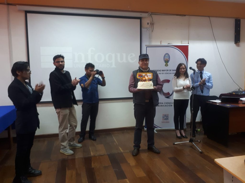 Por la celebración, la actual generación del Taller de Prensa organizó un festejo, donde se invitó a una de las estudiantes de la primera tanda de Enfoque y que ahora ya ejerce la labor periodística en medios. Así es el tiempo, pestañeas y te das cuenta que han pasado cinco, diez, veinte años.